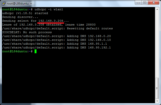 udhcpc -i wlan1