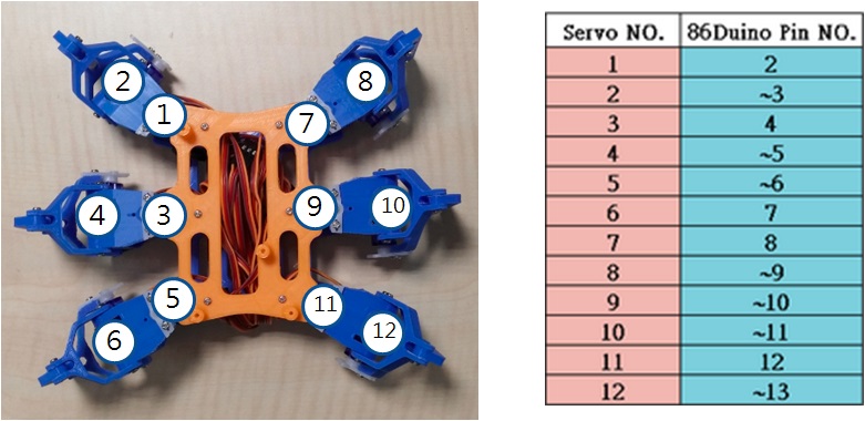 86小六足伺服機編號與 86DuinoOne 上的腳位對應如下: